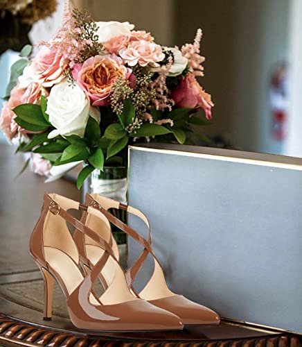 Minshluu Womens Pumps High Heels Pointed Toe Crossed Strap D'Orsay Zip up Stilettos Party Dress Shoes