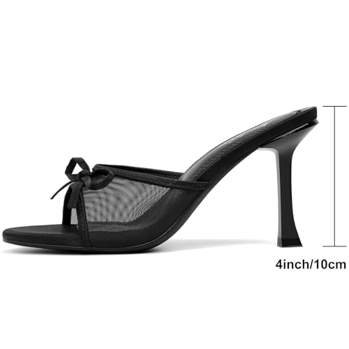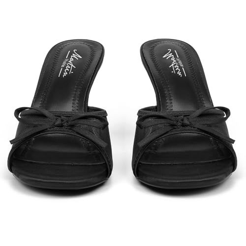 Mostrin Kitten Heels for Women Round Toe Heels With Bow Vintage Mules Sexy Slip on Stiletto Backless Sandals for Party Daily