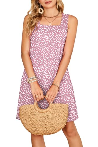 OFEEFAN Womens Square Neck Tank Dresses 2025 Summer Spring Loose Swing Sundresses with Pockets Plain/Print