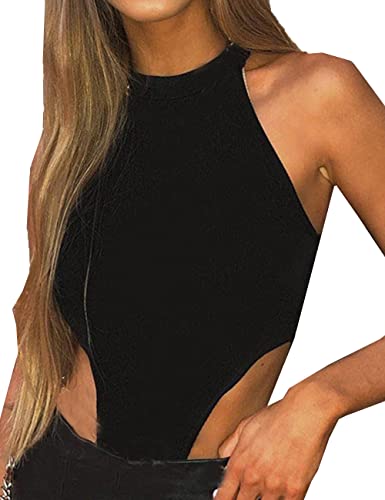 Women's Scoop Neck Bodysuit Sleeveless Ribbed Racerback Tank Tops Stretchy Bodycon One Piece Bodysuit