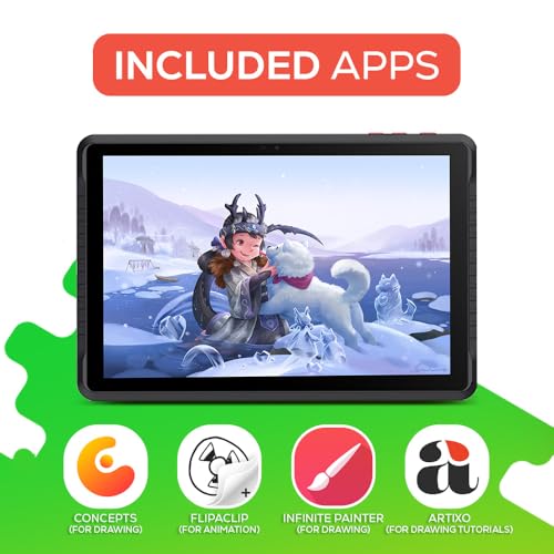SKETCH, ANIMATE or TAKE NOTES: Discover the most affordable art tablet designed for creativity and productivity. It comes with an active pen and pre-installed drawing and animation apps, making it perfect for artists, animators, or students taking notes in class.