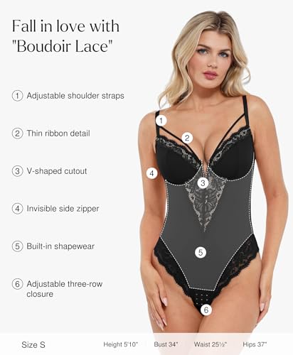 Popilush Body Suits for Womens Tummy Control Corset Lace V Neck Compression Bodysuit Underwired Side Zipper Party