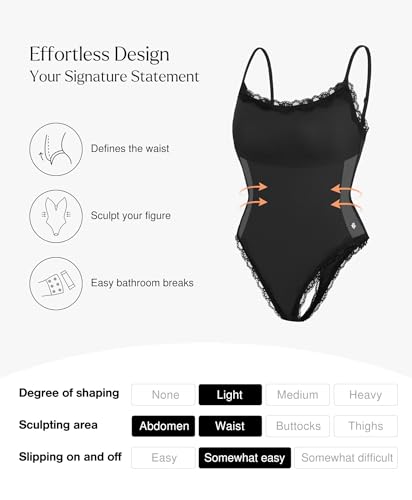 Popilush Lace Body Suits Women - Square Neck Sleeveless Thong Bodysuit Tummy Conotrol Double Lined Camisole Tank Tops
