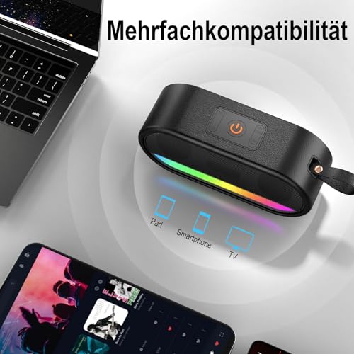 Bluetooth 5.3 & Extended Bluetooth Connectivity: Equipped with Bluetooth 5.3 technology, this bluetooth speaker has better, stable signal and high transmission rate to ensure reliability. The built-in microphone provides high quality and convenient hands-free calls. The portable speaker can automatically reconnect to the last device used. It can not only connect laptop, phone, MP3, iPhone, iPad, but also personal computer,TV .