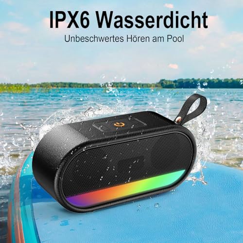 Exquisite Silicone Leather with RGB colorgul light: Our waterproof speaker offers a dazzling array of eye-catching color choices, bringing joy and delight to your life. Portable speaker bluetooth increase colored light modes and make the lights follow the music. Easy to switch with a light control button. As the music plays, the colors dance in sync, providing a more dynamic audiovisual experience for you to enjoy.