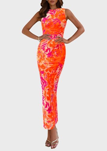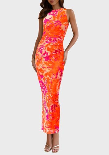 PRETTYGARDEN Wedding Guest Dresses for Women 2025 Summer Spring Floral Bodycon Sleeveless Mesh Maxi Long Dress