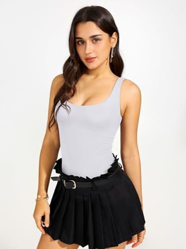 REORIA Bodysuit for Women Scoop Neck Sleeveless Tank Top Bodysuits 2025 Sexy Thong Bodysuit Basic Leotards for Women