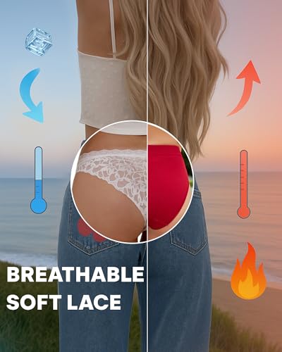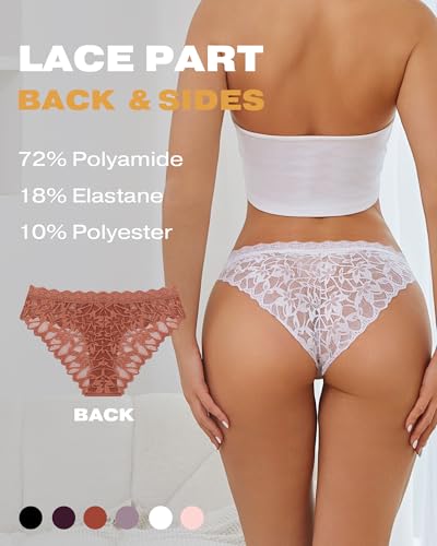 ROSYCORAL Sexy Underwear for Women Lace Cheeky Soft Hipster Low Rise Breathable Undies Cotton Bikini Panties 6 Pack