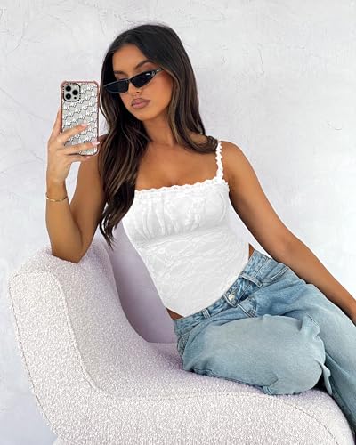 Saslax Women's Sexy Square Neck Lace Sleeveless Bodysuit Tank Tops Double Lined Body Suit Thong Outfits
