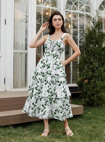 Scarlet Darkness Women's Floral Maxi Dress Summer Wedding Guest Dress Tiered Sleeveless Lace Up Corset Sundress