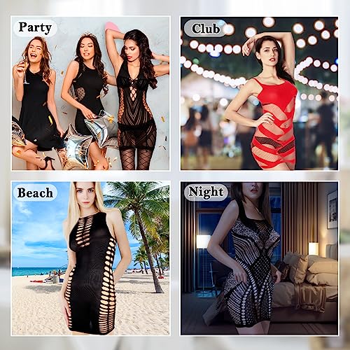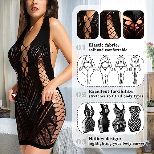 selizo Fishnet Lingerie Dress for Women, Black Fish Net Bodysuit Sexy Chemise Teddy Naughty Women's Mesh Lace Body Stockings