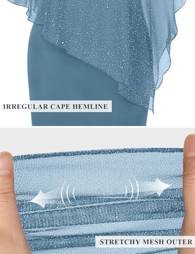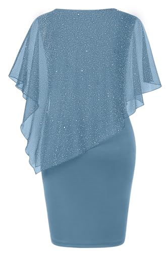 SeSe Code Women's Mesh Cape Overlay Bodycon Knee Length Pencil Dress for Wedding Guest