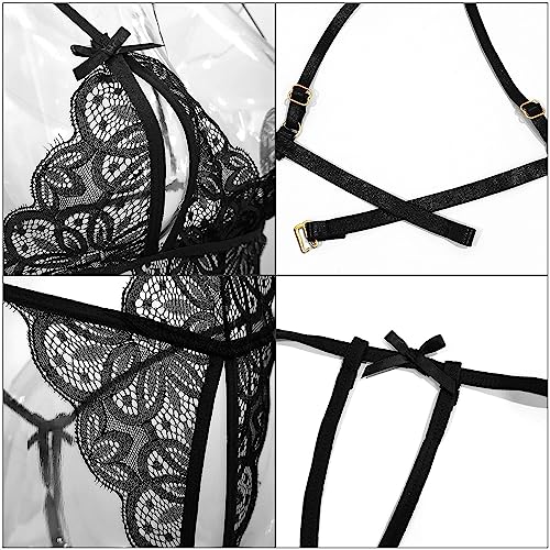 Sexy One Piece Lingerie Women Lace Bodysuit Deep V Neck Floral Strappy Babydoll Teddy Underwear Mesh Cutout Crop Top
