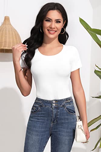 SHEIUGU Women??s Sleeveless Long Sleeve Crew Neck Ribbed Stretchy Slim Fit Tops Bodysuit Basic Jumpsuit