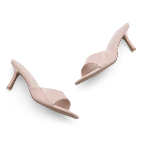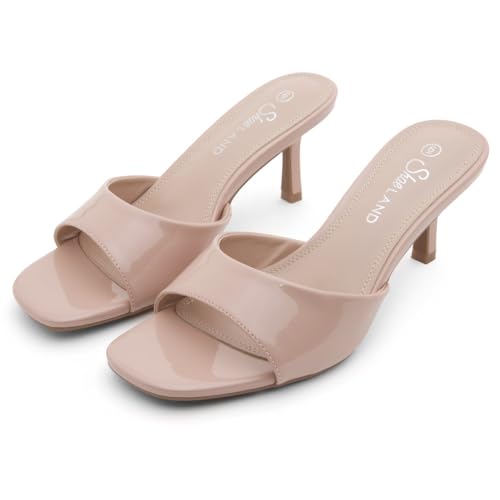 Shoe Land Women's Low Heels Stiletto Heeled Slides, Open Toe One Band Slip-On Heeled Mules ?C Dressy Heeled Sandals for Prom, Party Wedding and Vacation