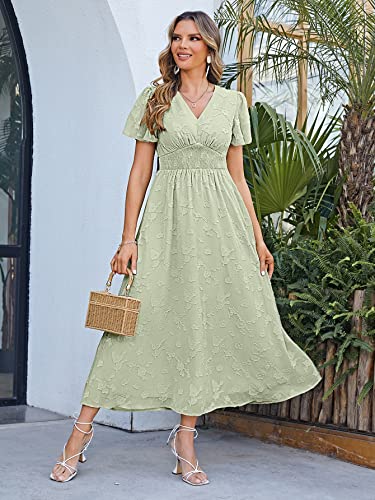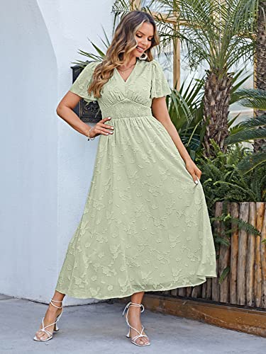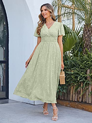 Simplee Women's Boho Floral Maxi Dress Flowy Casual V Neck Short Sleeve Wedding Guest Holiday Beach Long Dress