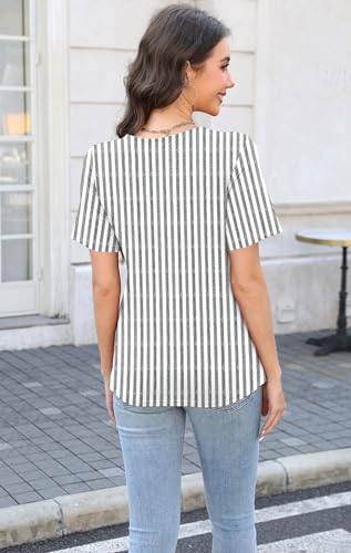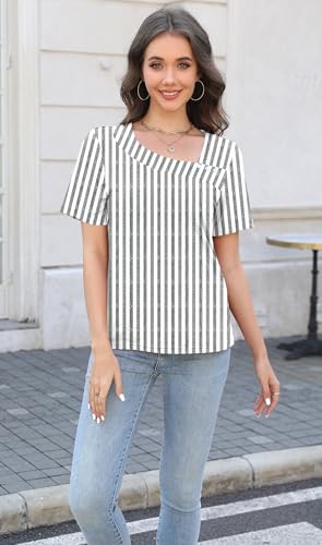 Soesdemo Womens Summer Tops Asymmetrical Neck Short Sleeve Button Dressy Casual Lightweight Tunic T Shirts Blouse