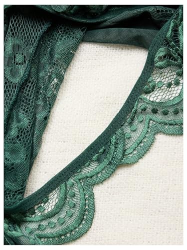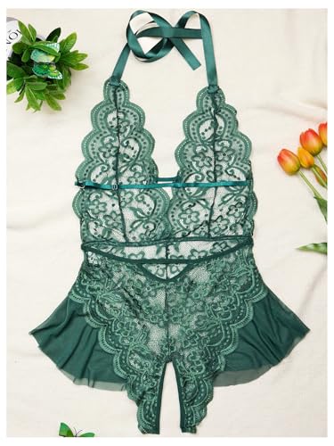 SOLY HUX Women's Floral Lace Sheer Teddy Lingerie Bodysuit Halter Deep V Neck Babydoll Nightwear