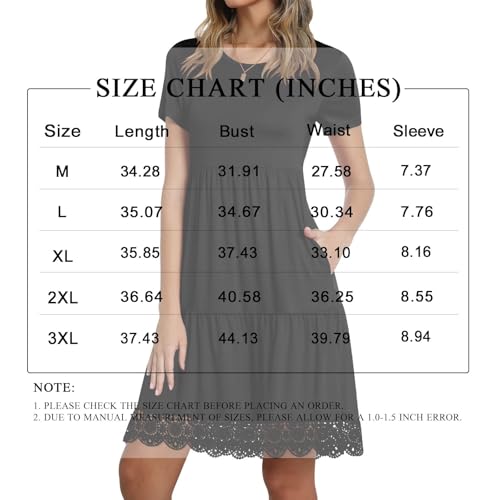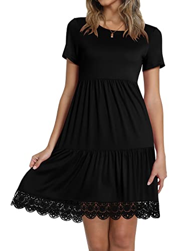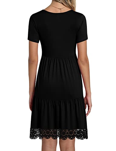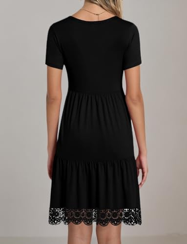 TAOHUADAO Women's Summer Casual Tshirt Dresses Short Sleeve Ruffle Swing Lace Hem Dress with Pockets