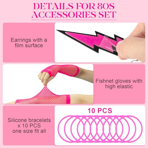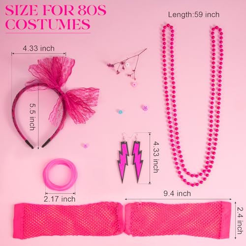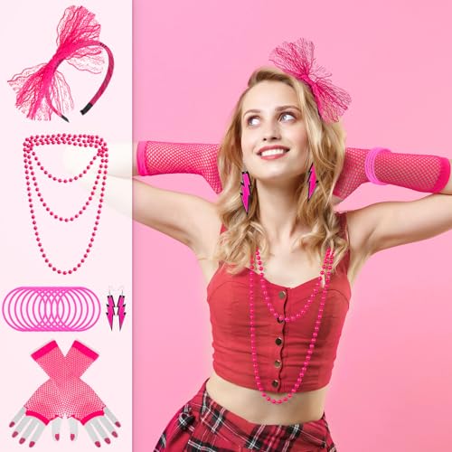 80s Outfit for Women, Fancy Dress Costume Accessories Lace Headband Earrings Fishnet Gloves Necklace Bracelet for Women 80s Themed Party
