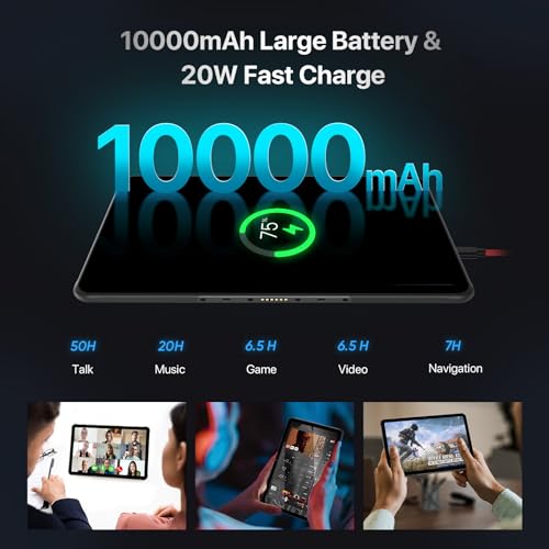 ??10000 mAh Large Battery + 20W Fast charging??The gaming tablet has a built-in 10000mAh large-capacity high-quality battery, which gives it strong battery life. Not only it have long standby time when traveling outdoors, it also avoids the embarrassment caused by insufficient battery when making phone calls, watching videos, listening to music, playing games, taking photos, processing documents, drawing, etc. You can enjoy the convenience of work and the happiness of life at any time and place. Additionally, the rugged tablet supports 20W fast charging, enabling a full charge in just about 3 hours.T1 also has reverse charging function. Perfect for enthusiasts who enjoy outdoor activities.