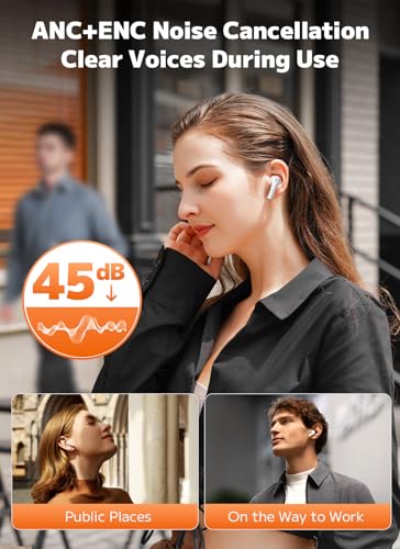 Professional Noise Cancelling Headphones: True wireless earbuds with ANC + ENC block ambient noise and deliver crystal-clear calls. Whether listening to music, watching shows, or on business calls, the moment you wear the earbuds, noise disappears. Four adjustable noise-cancelling modes let you customize settings via the charging case for the optimal experience