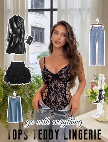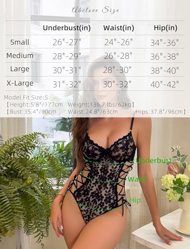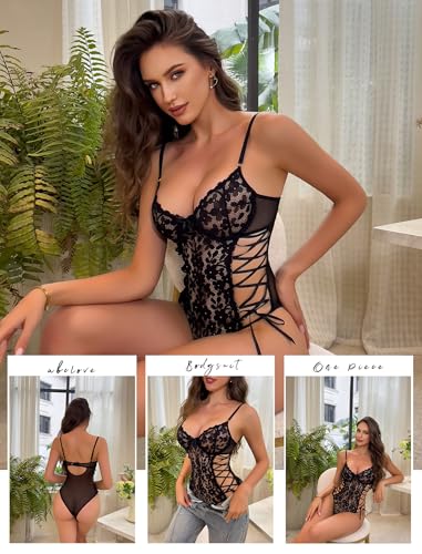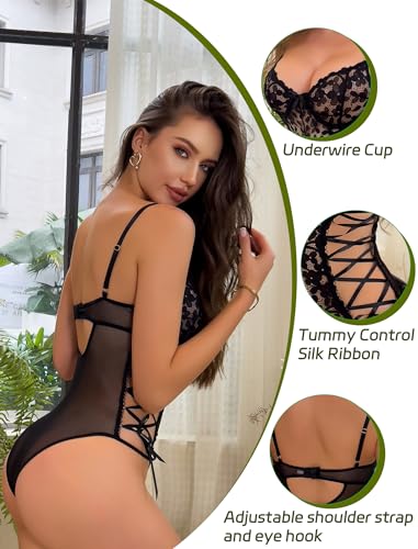 Women Sexy Lace Up Teddy Lingerie Underwire Bodysuit Top Mesh Sheer One Piece Boudoir Outfit