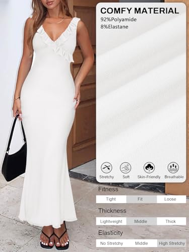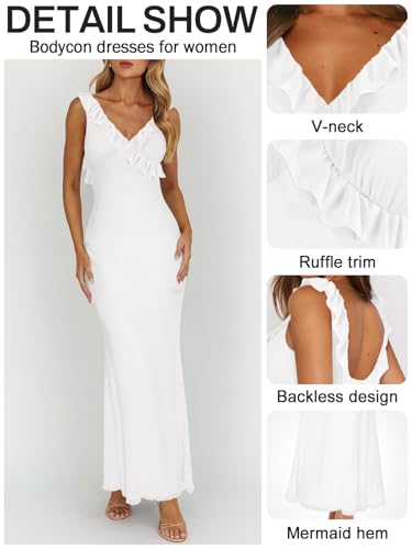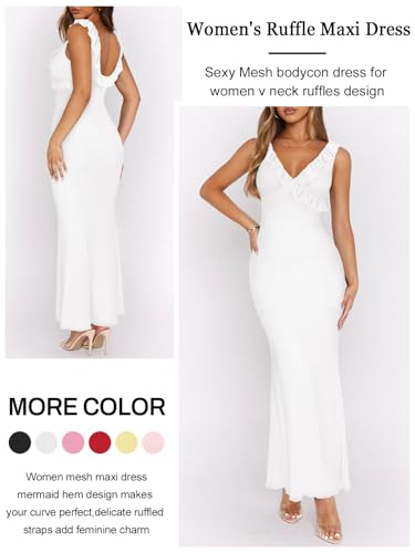 Women Sexy Sleeveless V-Neck Ruffle Backless Summer Dresses Long Formal Dress for Women Cocktail Party Prom Dress