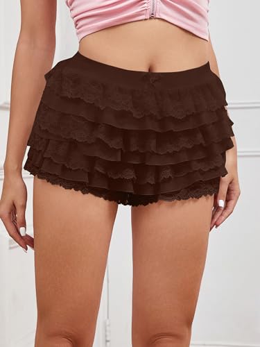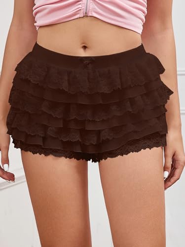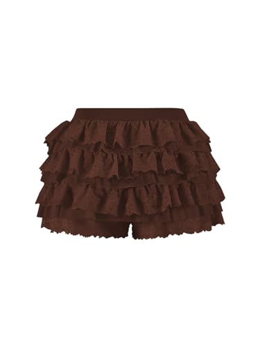 Women Y2K Lace Multi-Layered Bloomers, Lolita Ruffle Shorts, Sexy Short Pumpkin Pants, Elastic Waist Sweet Pettipants
