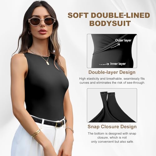 Women's Crew Neck Sleeveless Bodysuit Seamless Double-Lined Stretchy Tank Top Bodysuits for Women Home Work Date Wear