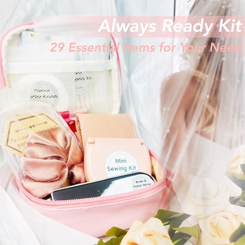 Perfect Survival Kit for Bride at Wedding Emergency Need: This is a comprehensive emergency kit that will solve all problems on the wedding day. With the manicure set, hair ties, blister guard, double sided tape, nipple covers, retractable brush, swewing kit, hair pins, clipos and ties, scented wipes, cotton swab, dental floss and tooth picks and more, you will know that you can handle any mishaps. This provides constant convenience within arms reach.