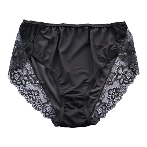 Women's Plus Size Briefs Hi Cut Full Brief Panty Lace Trimmed Milk Protein Fiber Underwear