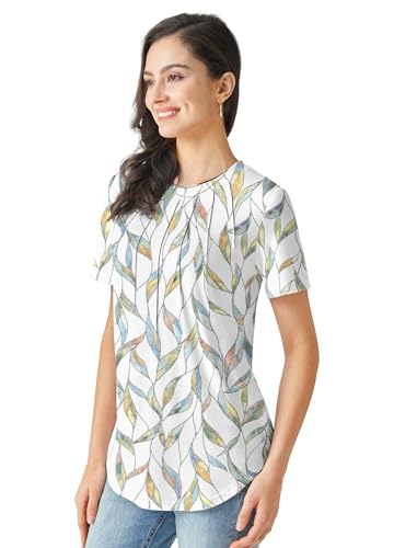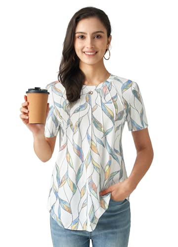 Womens Short Sleeve Tops Summer Tops for 2025 Casual Crew Neck Pleated Tops Blouses Fashion