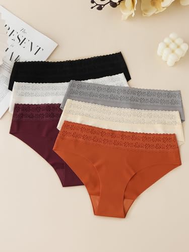 Womens Underwear Seamless Sexy Lace Ladies Panties No Show Cheeky Hipster Bikini Briefs 6 Pack
