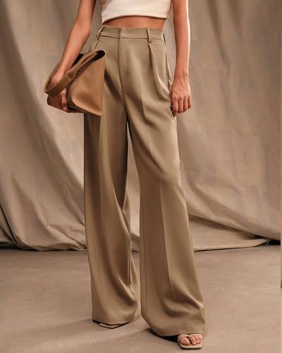 Womens Wide Leg Pants High Waist Straight Work Pants Office Business Casual Palazzo Trousers with Pockets