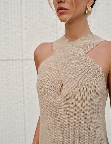 Yeokou Women Halter Cross Over Collar Tank Knit Sleeveless Top Solid Color Casual Summer Blouse