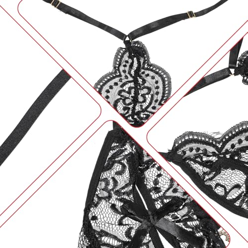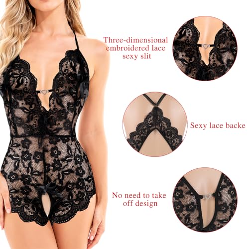 Teddy Lingerie For Women Sexy Floral Lace Lingerie Sheer Bodysuit Women's Exotic Underwear Nightgown One Piece Red Black
