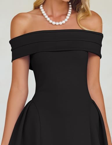 ZESICA Cocktail Dresses for Women's Elegant Off Shoulder Short Sleeve Swing A Line Wedding Evening Party Midi Dress