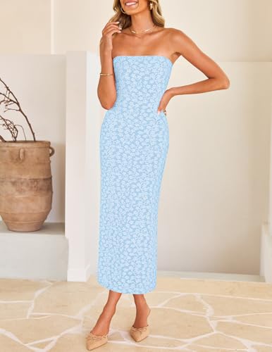 ZESICA Women's 2025 Summer Boho Floral Strapless Bodycon Dress Off Shoulder Tube Beach Party Long Midi Dresses