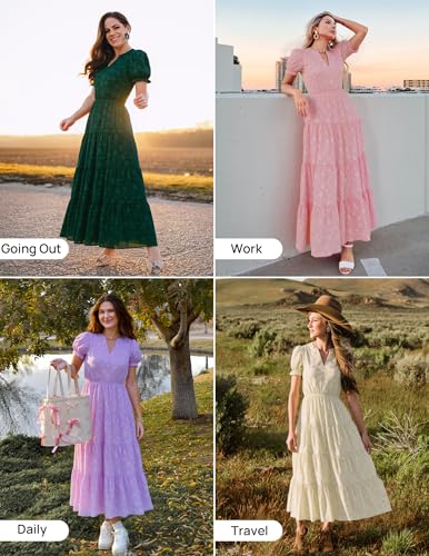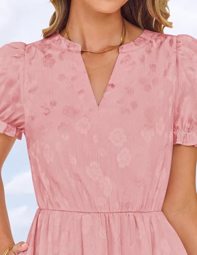 ZESICA Womens 2025 Summer Puff Short Sleeve Midi Dress Floral V Neck Textured Ruffle Flowy Beach Party Dresses